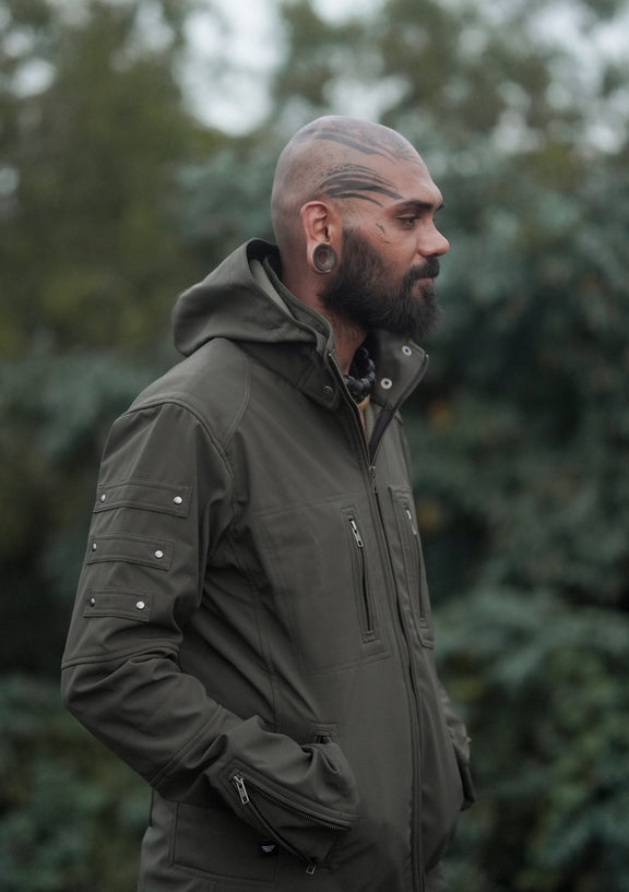 Armor Jacket 2.0 Olive Green - Futuristic Windproof Winter Hoodie Jacket for Men